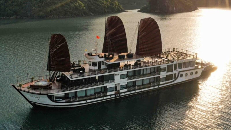 • Set sail on a luxury day cruise to explore the serene beauty of Lan Ha Bay, a hidden gem of Ha Long Bay.