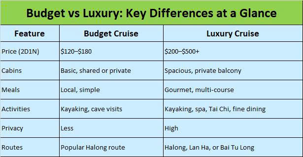 Confused between budget and luxury Halong Bay cruises? This complete guide compares prices, services, routes, and experiences to help travelers choose the perfect Halong Bay cruise for their Vietnam adventure.